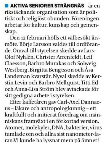 AKTIVA SENIORER I STRÄNGNÄS. Vi arbetar för att få intressanta