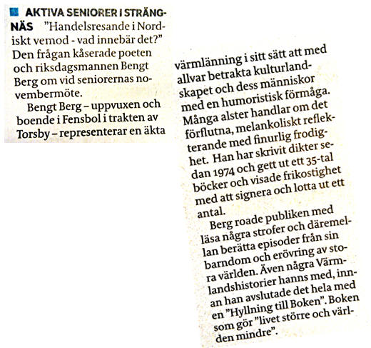 Månadsmötet i Domherren onsdagen den 14 november Bengt Berg - "Handelsresande i Nordiskt vemod"