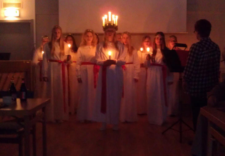 stilla stund följde för att njuta av ett ungdomligt luciatåg från