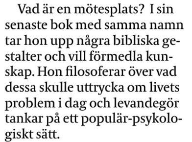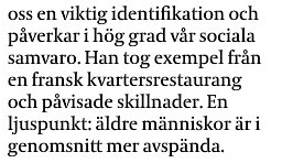 och pekat på många brister i vårt sätt att se på äldre. Vågar jag bli gammal? Hon tar liknelsen med Tove Janssons Knyttet, Ensam och rädd men som till sist får trygghet. Vem är gammal? "När man inte är nyfiken på morgondagen längre", säger hon. Westerholm refererade till en del forskare och påvisade vikten av stimulans för hjärtats harmoni i exempelvis äldres boende. Detta borde vara ett stort politikeransvar. Vidare gav hon en exposé över åldersdiskriminering som förekommer såväl i arbetsliv som i sjukvård dagligdags. En ny lag om detta fenomen träder i kraft från och med 2013. Vad är den viktigaste känslan för oss? Jo, att känna sig behövd.