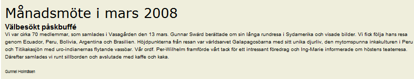 | Den 20 februari avlöpte årsmötet för föreningen och